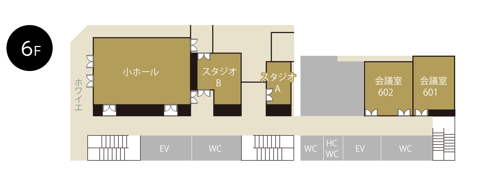 エレベーターを出て、会場の「スタジオA」または「スタジオB」に向かいます。
